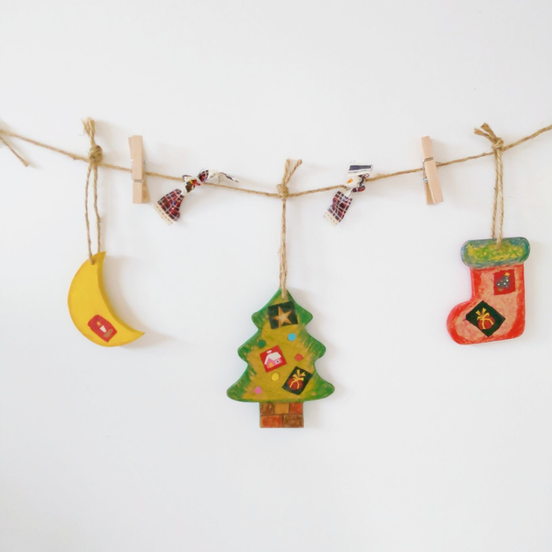 ツリー H10cm W8cm D0.6cm 月 H6.5cm W3cm D0.6