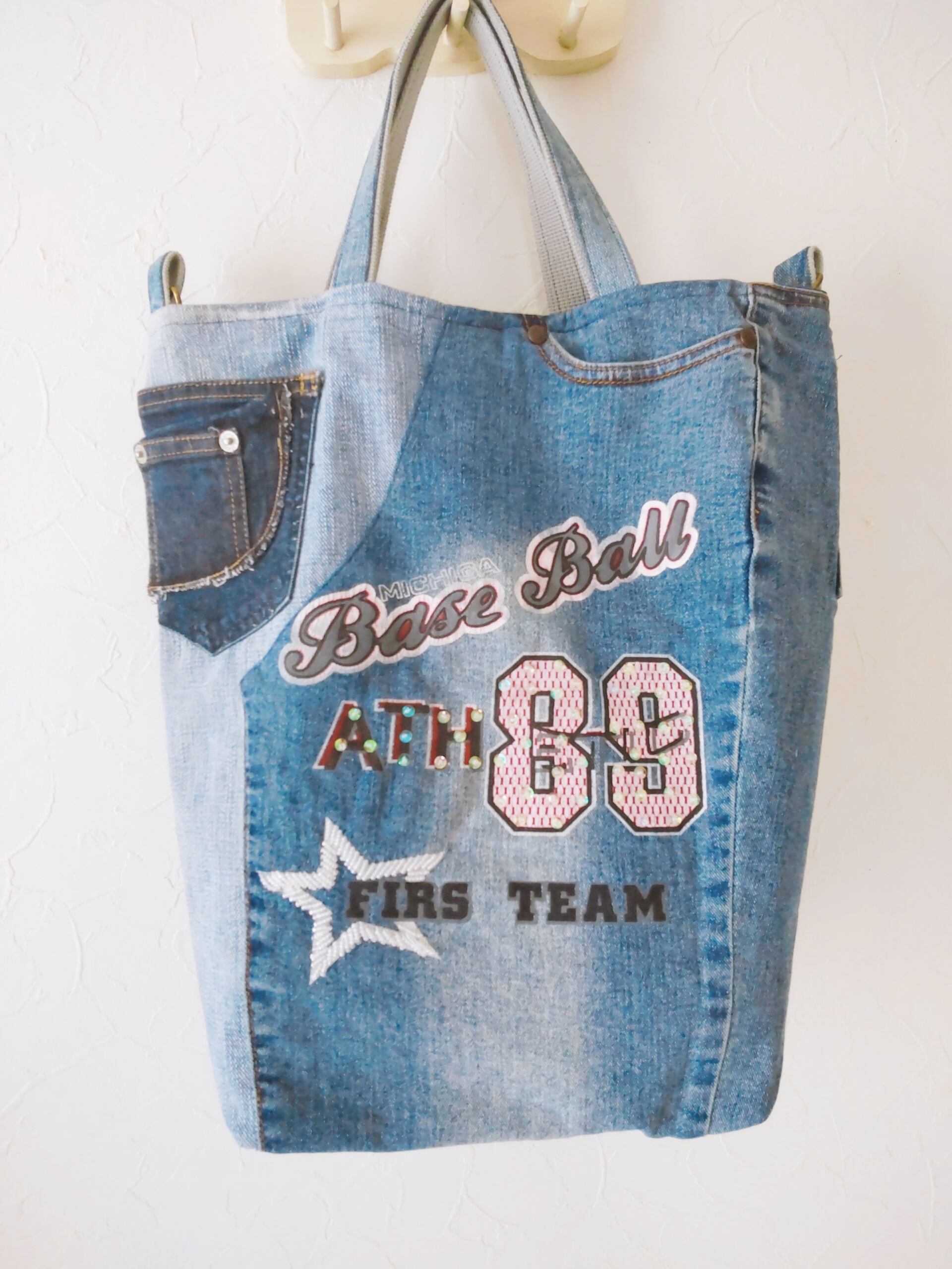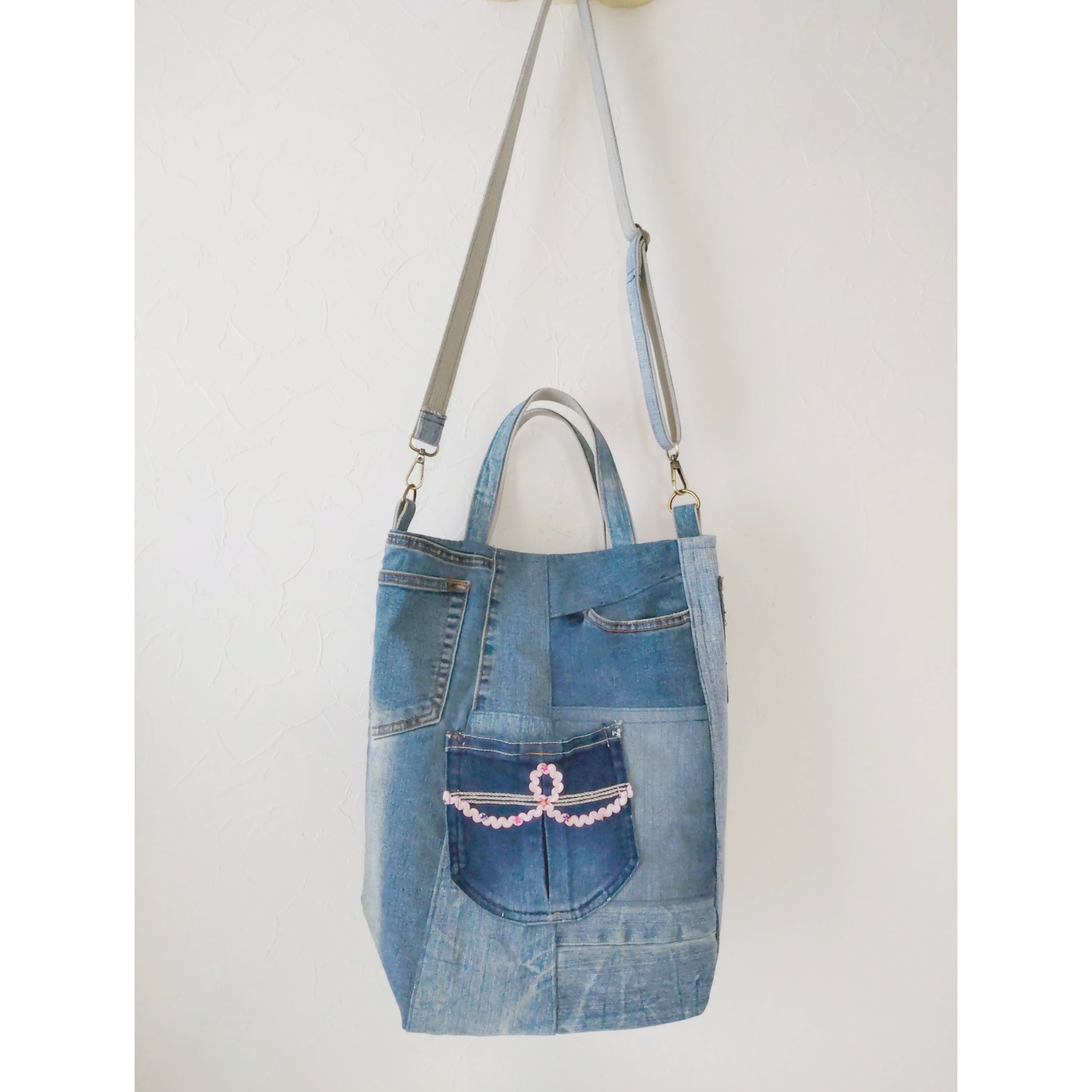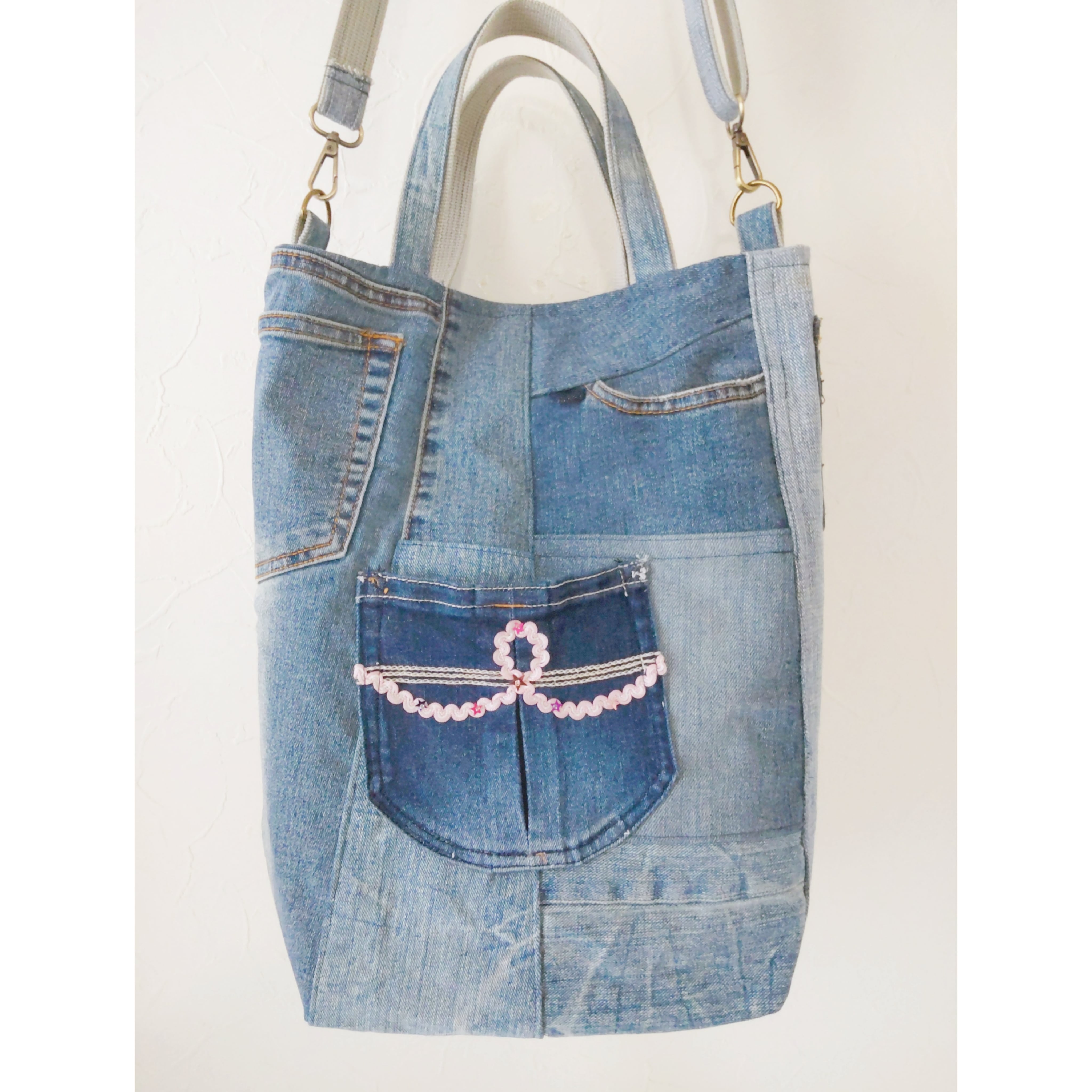 ♦ジーンズリメイクバッグはポケットがいっぱい! 数えてみてね!