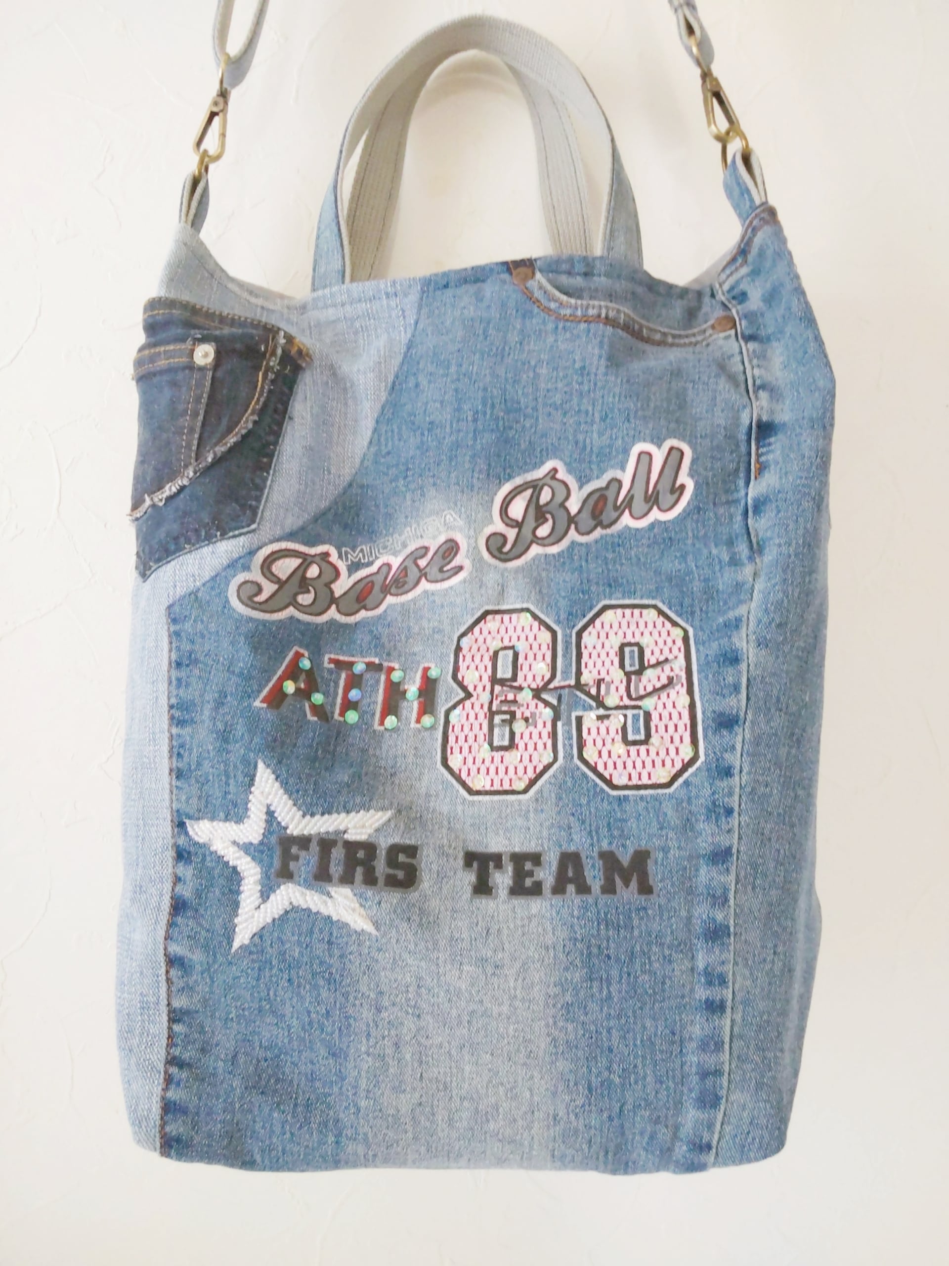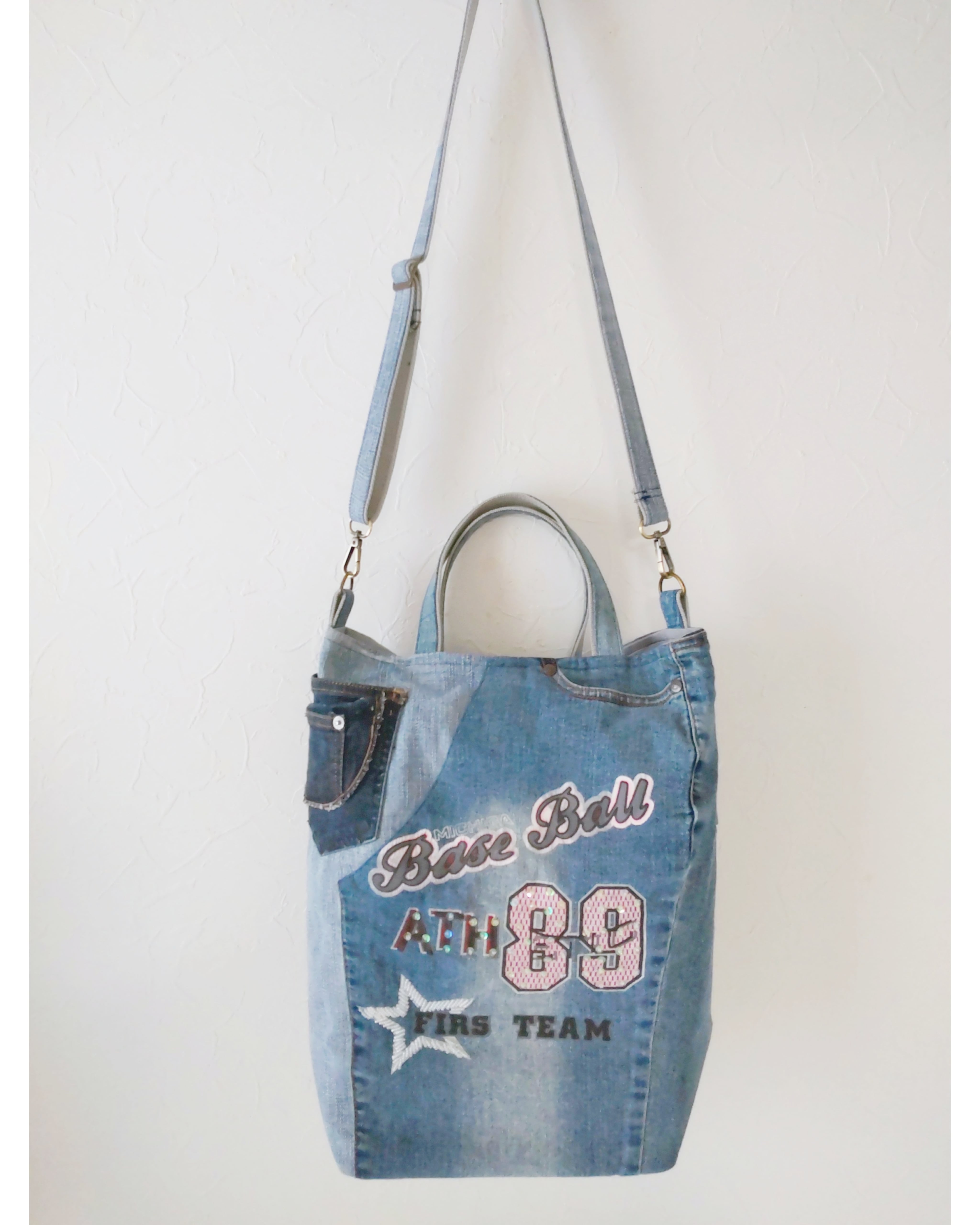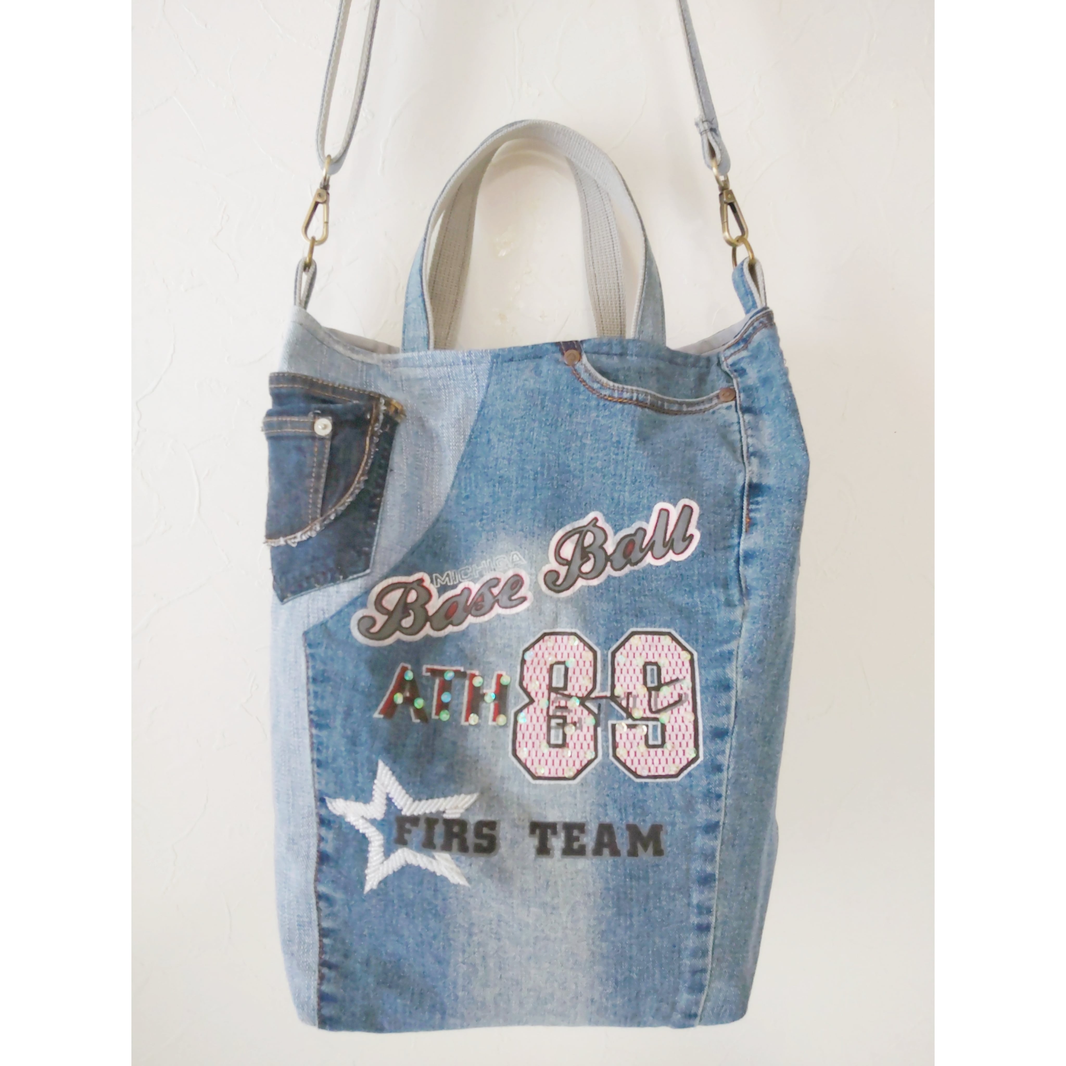 ♦ジーンズリメイクバッグはポケットがいっぱい! 数えてみてね!