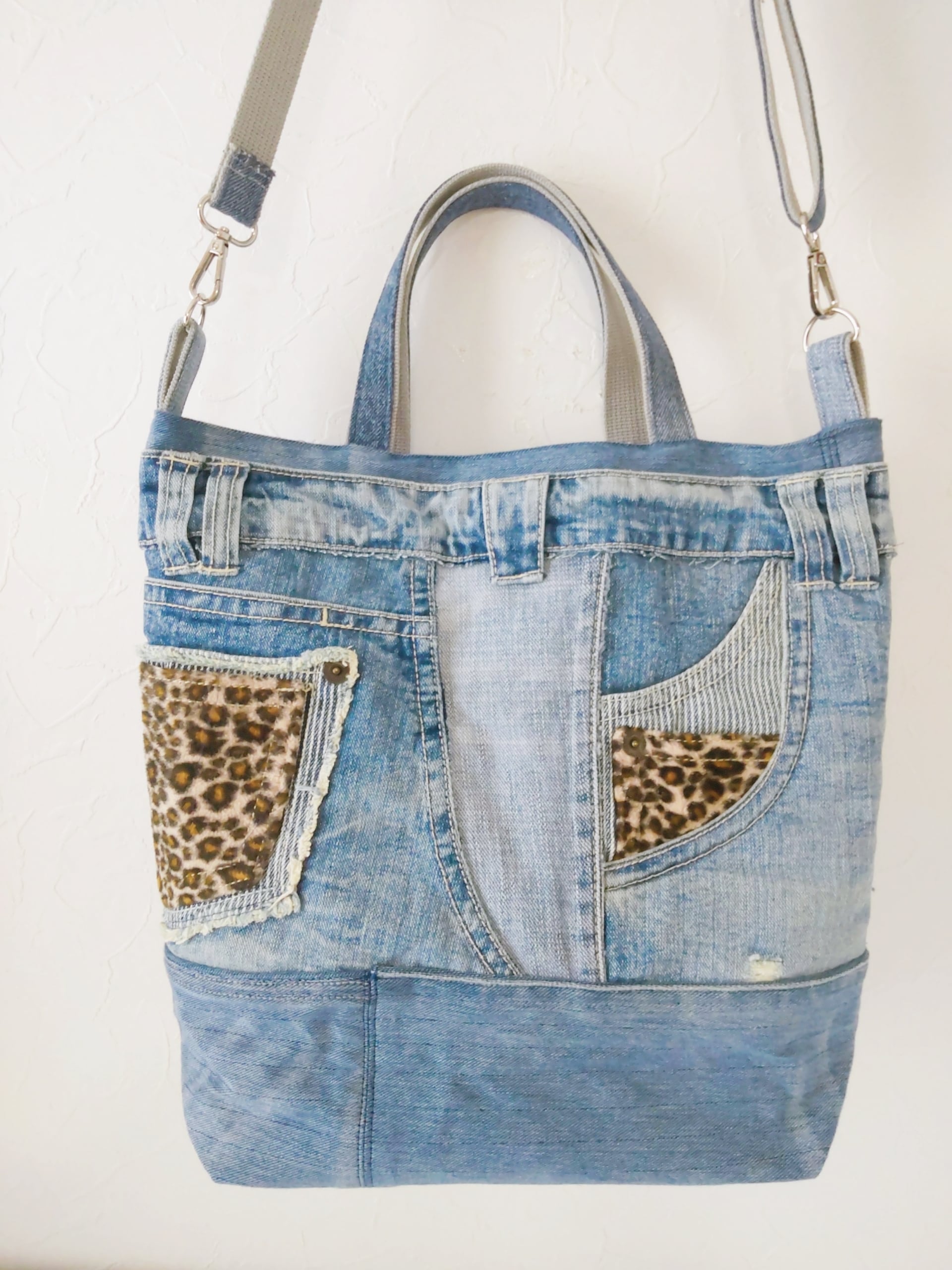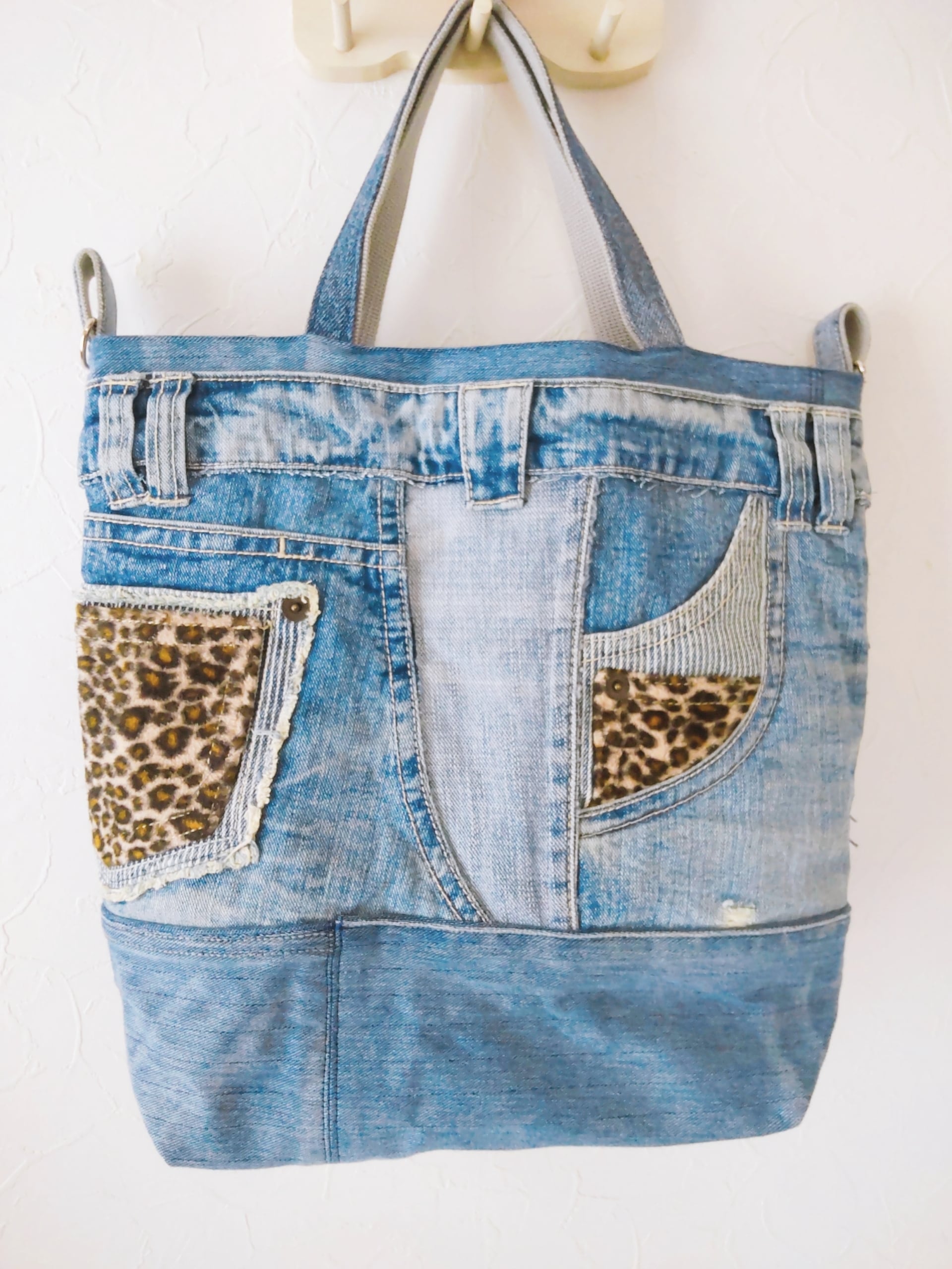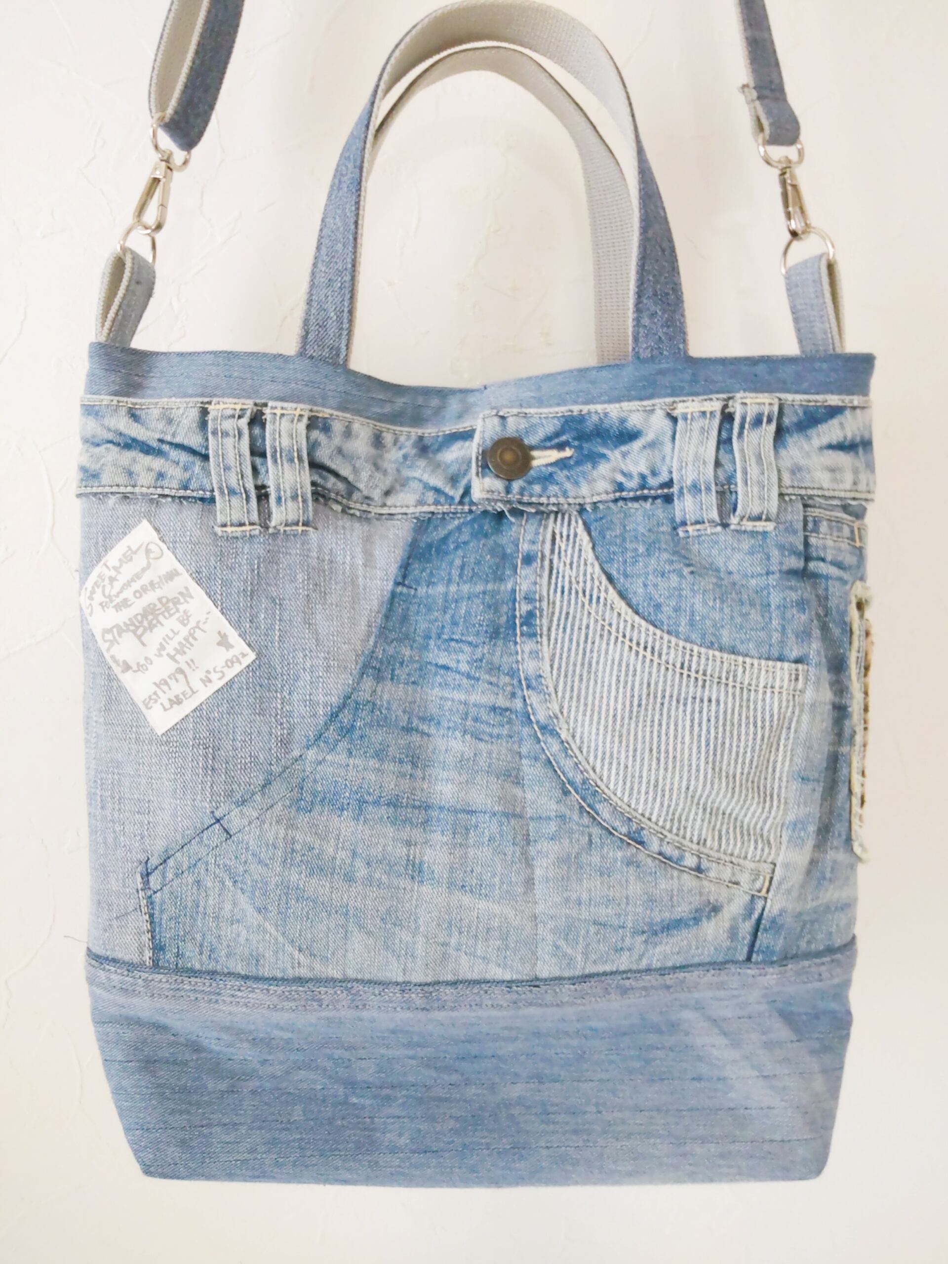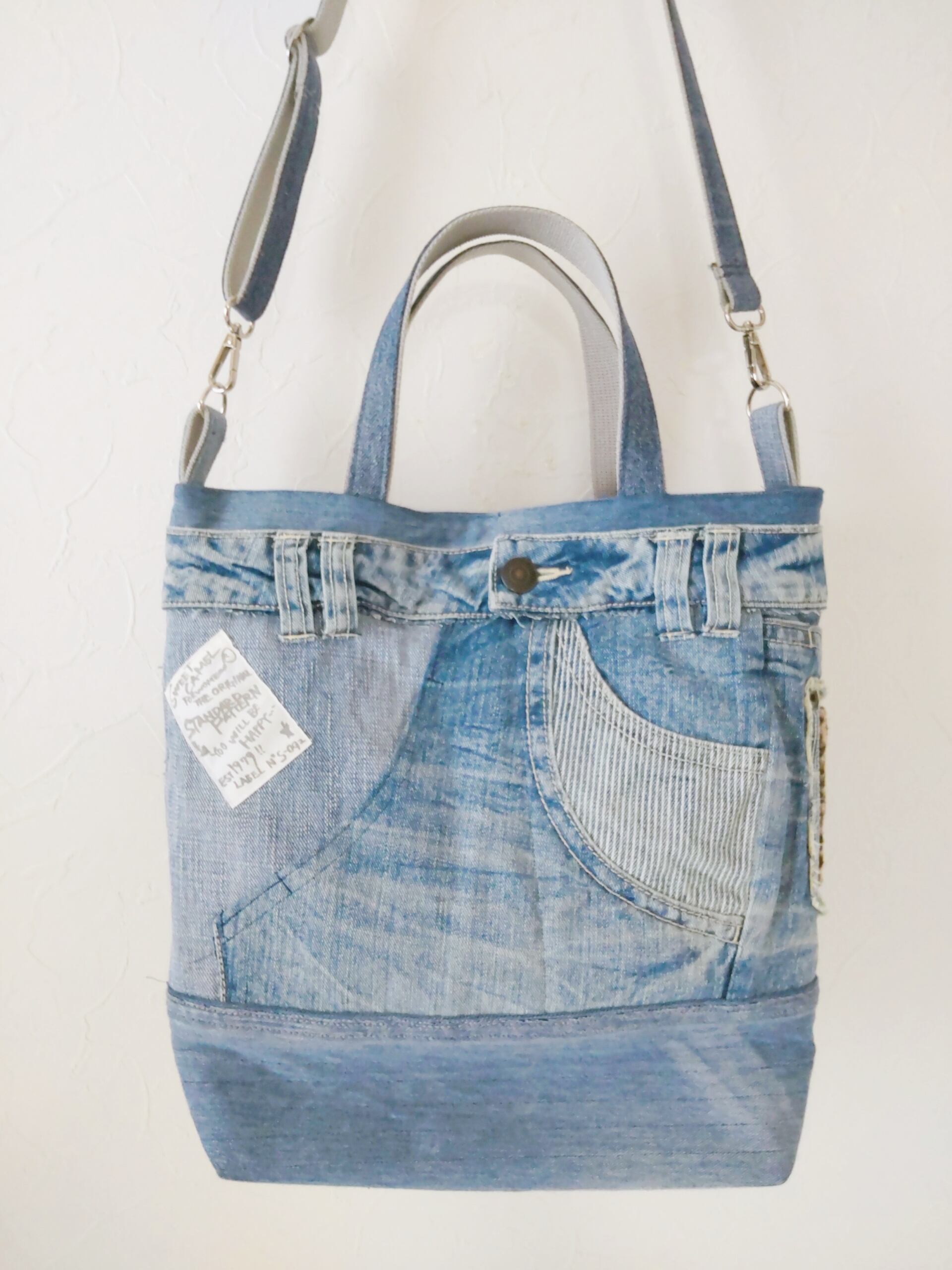 ♦ジーンズリメイクバッグはポケットがいっぱい! 数えてみてね!