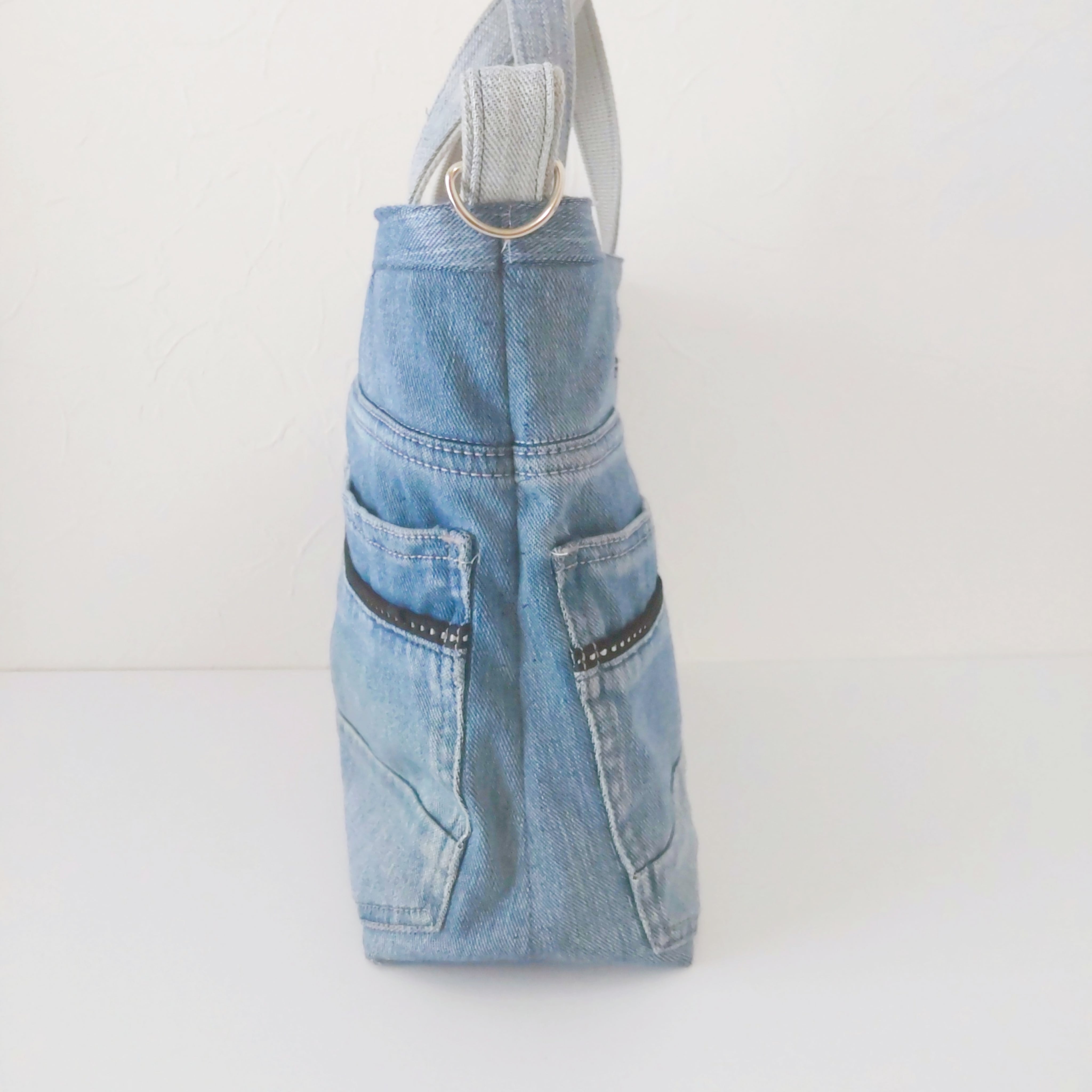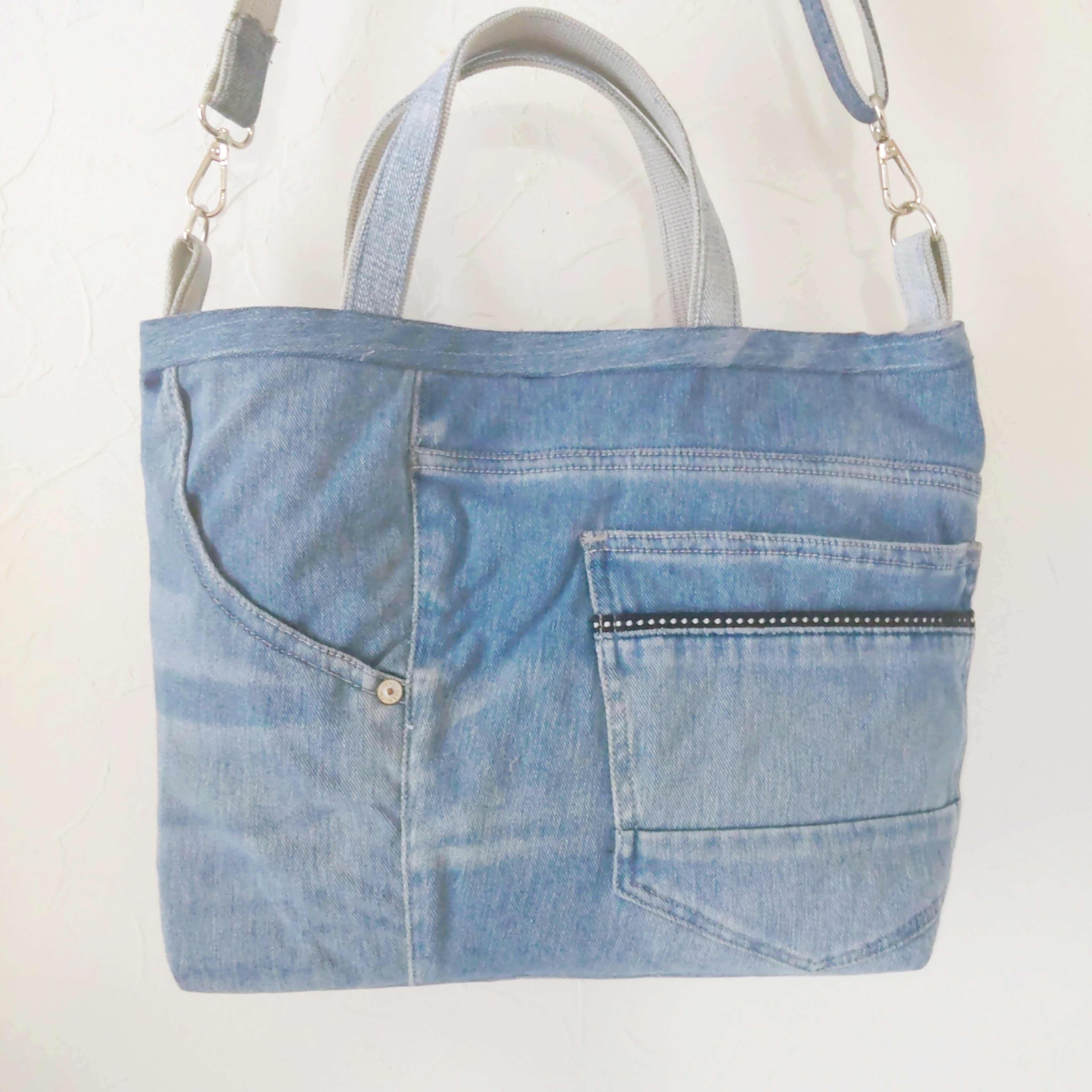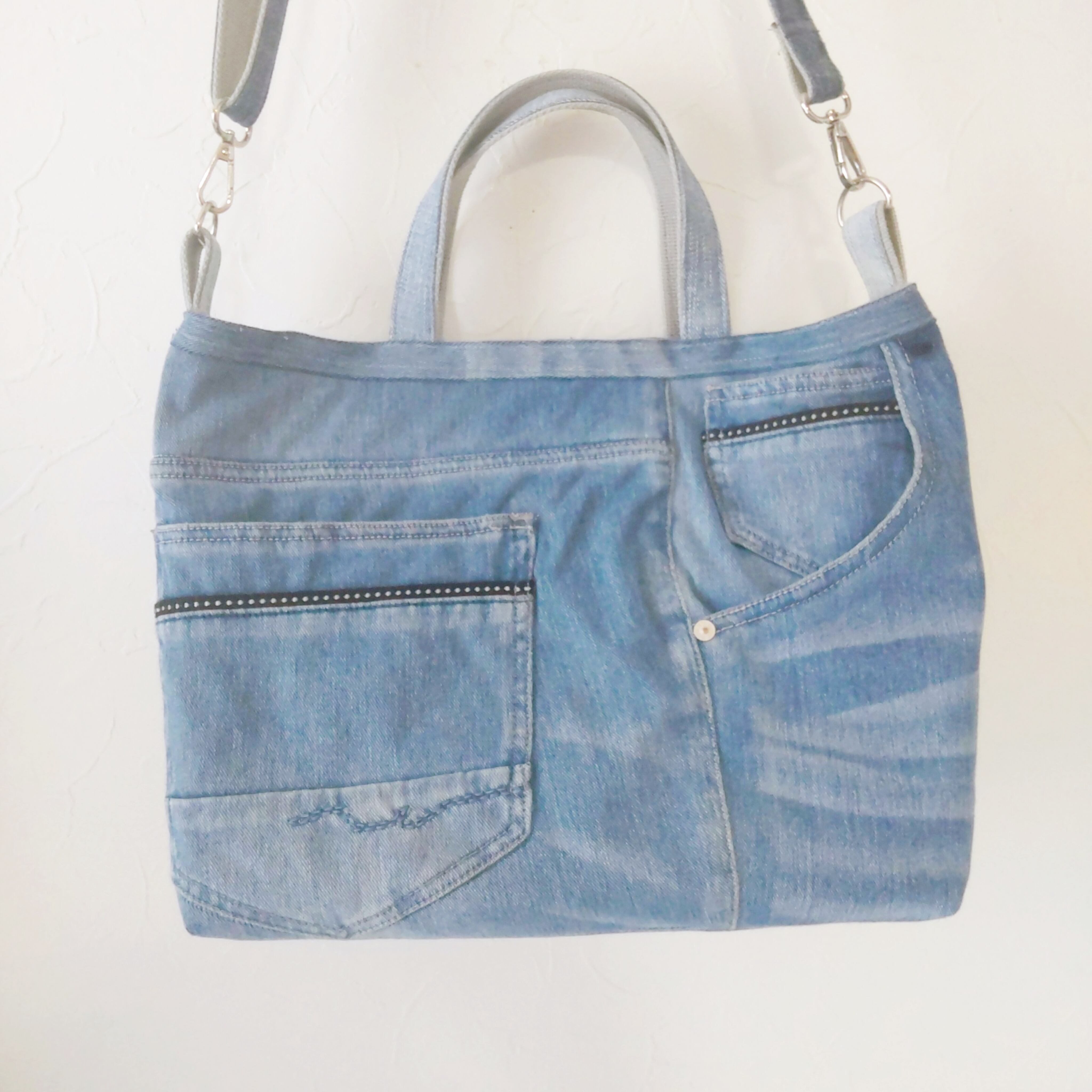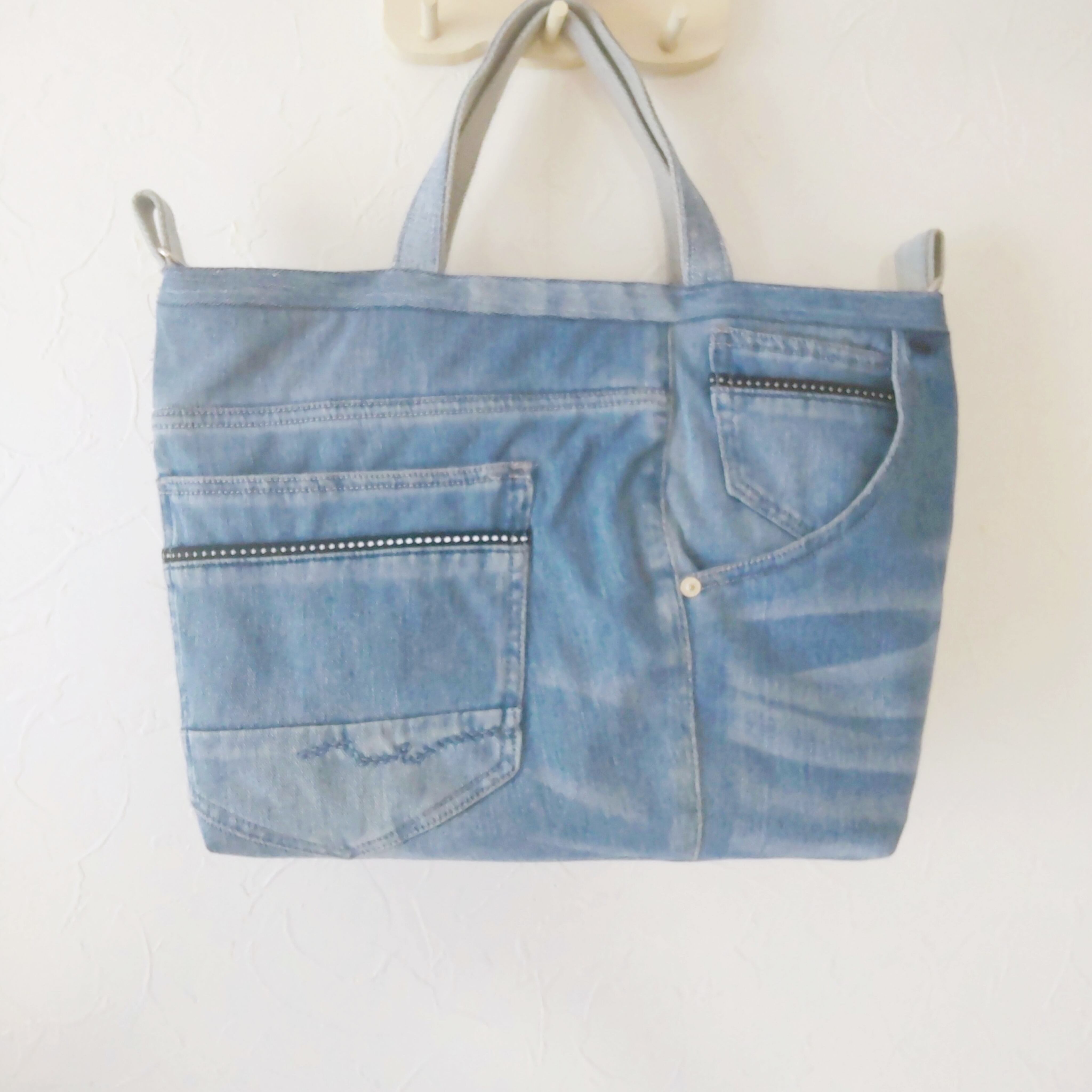 ジーンズリメイクバッグはポケットがいっぱい!