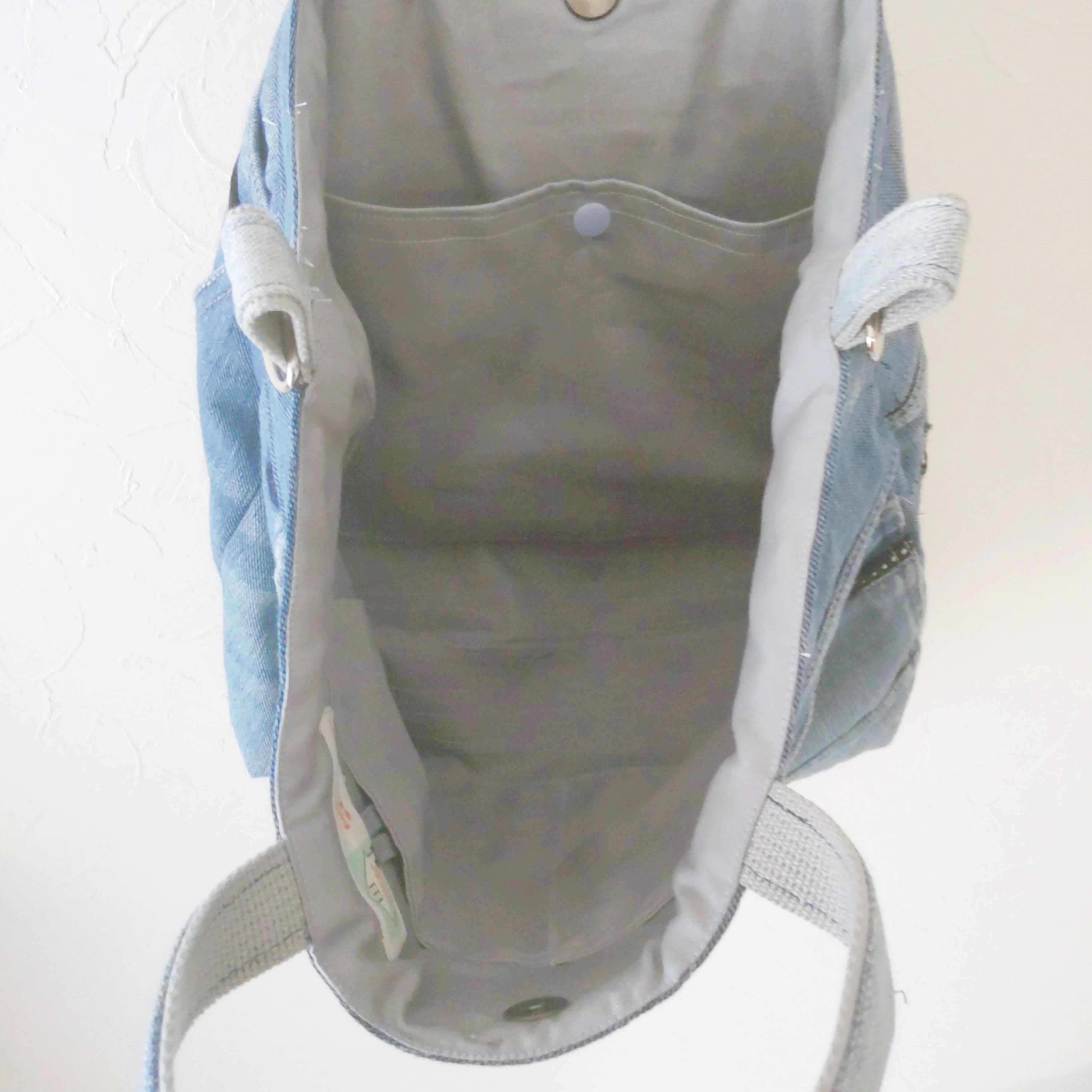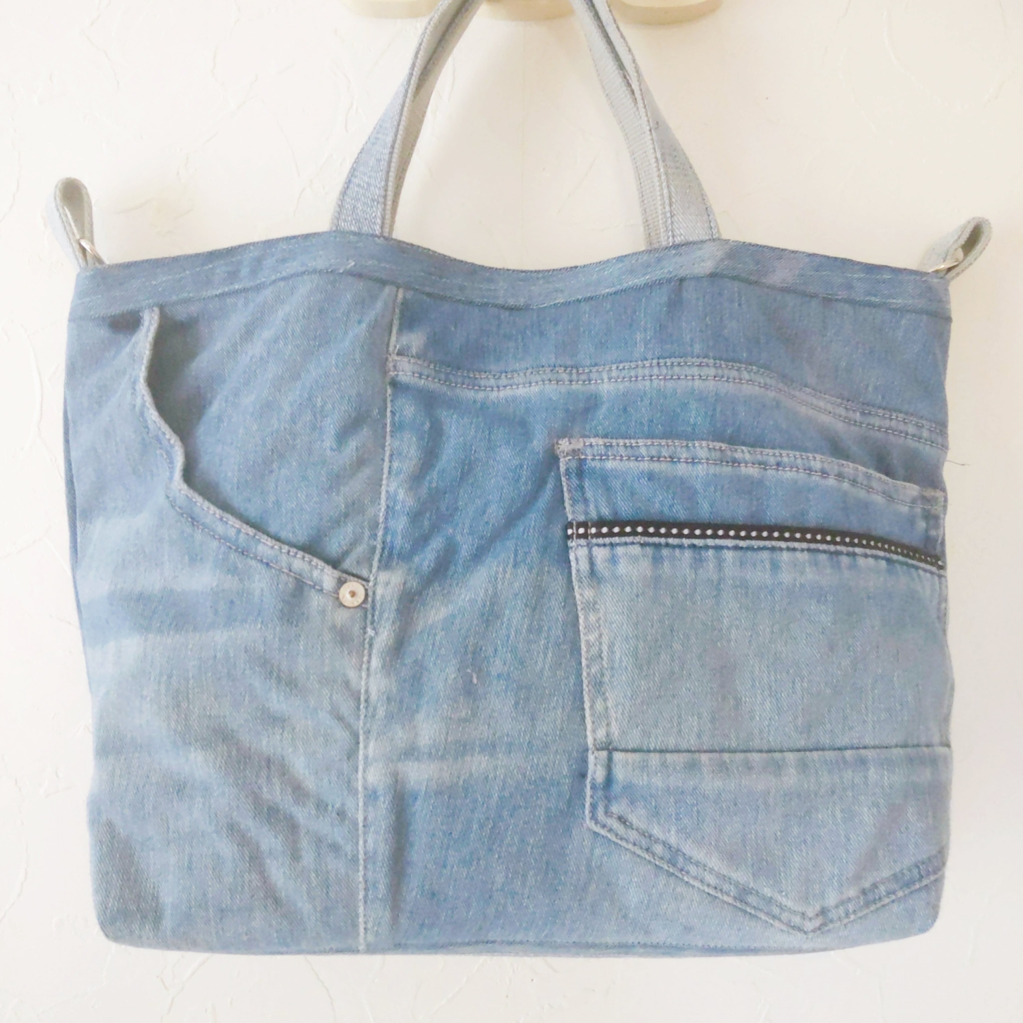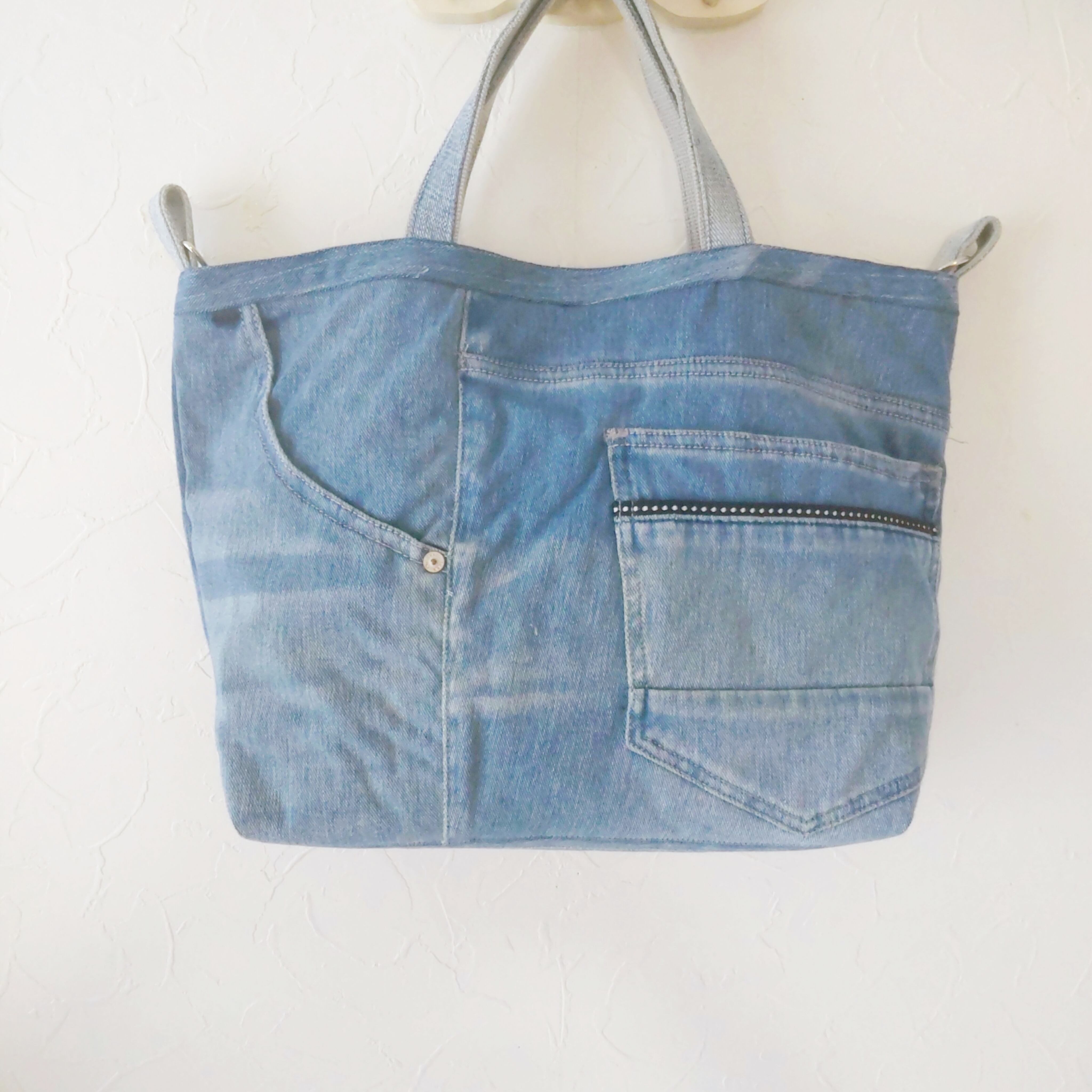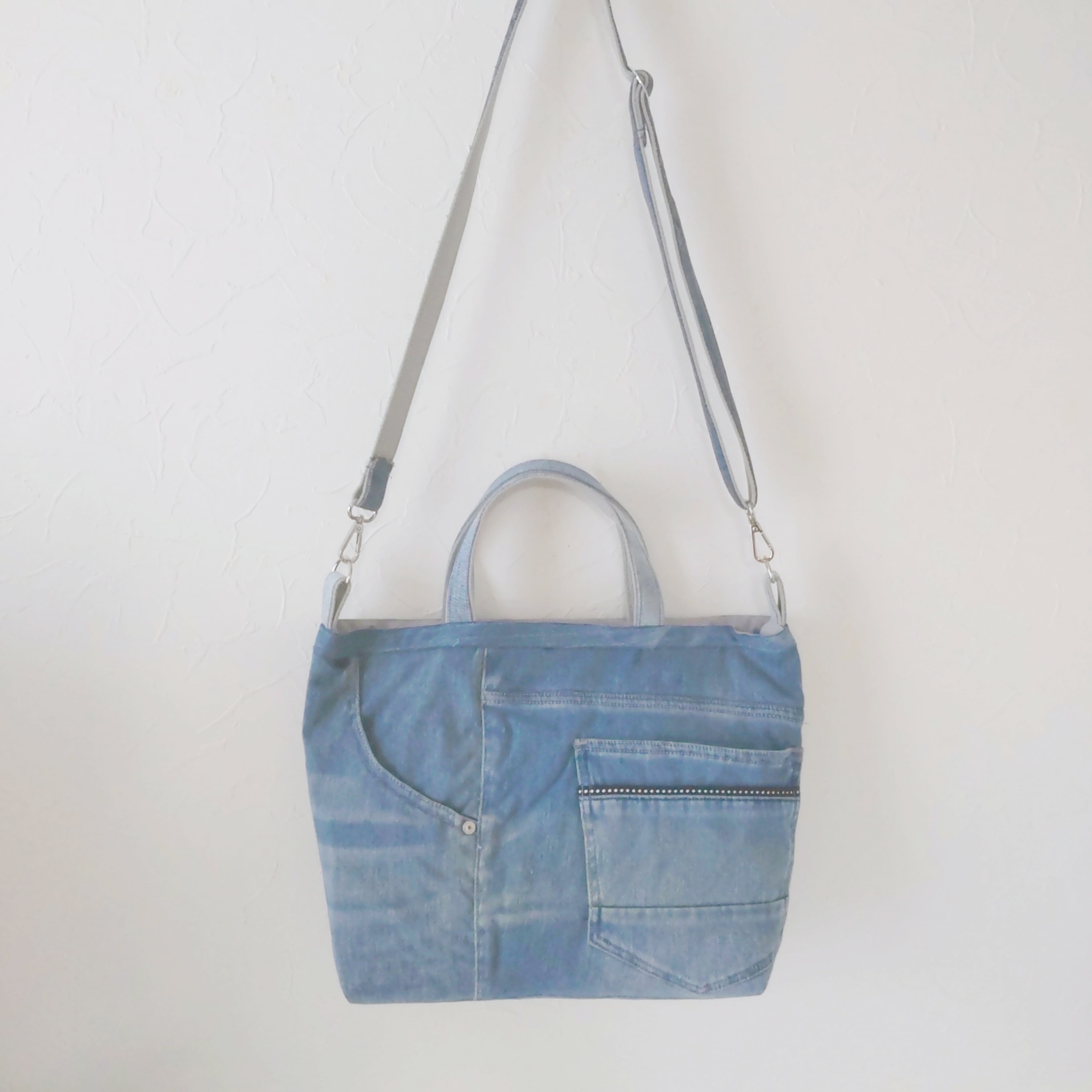 ジーンズリメイクバッグはポケットがいっぱい!