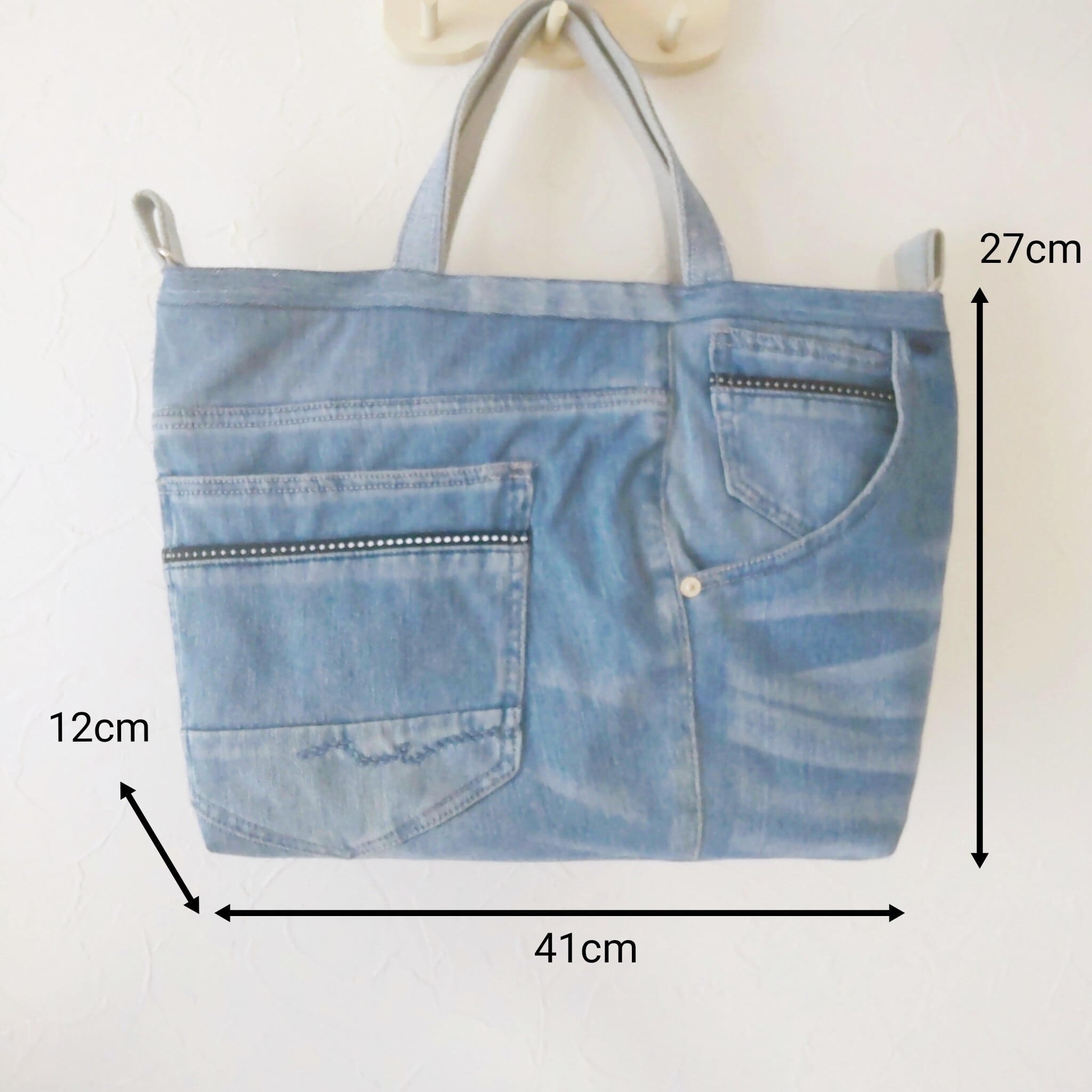 サイズ:H27cm W41cm マチ12cm 持ち手2本 31cm 肩ひも最長117cm(取り外し可)